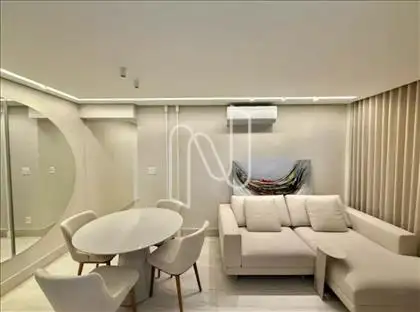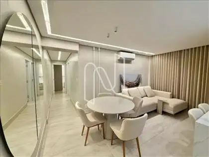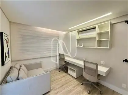 A sala ampla para dois ambientes possui piso em porcelanato, rebaixamento de teto com projeto luminotécnico e painel planejado, criando um ambiente moderno e acolhedor. O apartamento dispõe de lavabo e duas suítes máster com excelentes armários, além de uma cozinha americana totalmente planejada, que integra funcionalidade e design. A área de serviço conta com armários e ótimo espaço. São duas vagas de garagem em linha, cobertas e demarcadas.