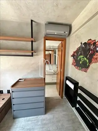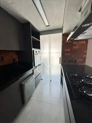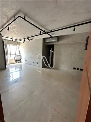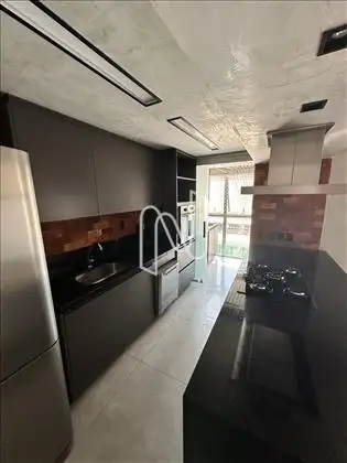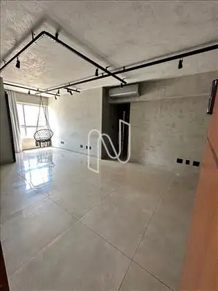 Apto de 02 quartos, com uma sala ampla, arejada, com iluminação planejada, toda em porcelanato, com ar condicionado e uma ótima cozinha americana, com uma ilha no centro dela, já com armários.