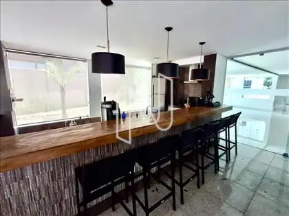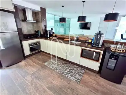 A área social conta com sala ampla para dois ambientes, perfeita para receber com estilo, além de lavabo e acabamentos de alto padrão. São duas suítes espaçosas, todas com armários planejados, e banheiros com armários, bancadas sofisticadas e box em blindex. A cozinha planejada alia funcionalidade e design, com área de serviço independente que garante discrição e praticidade no dia a dia.