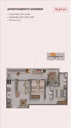 - 3 unid de 2 quartos com suíte - 72,27m²