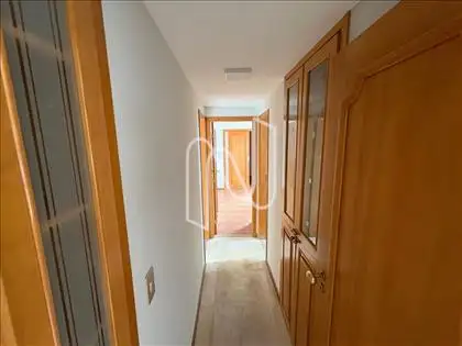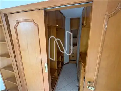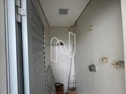 02 Quartos com closet, piso cerâmica, 01 com sacada, armário no corredor, banheiro revestido em fórmica piso e bancada em mármore com armários, box blindex.