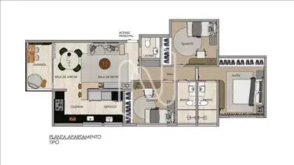- Cozinha funcional integrada à sala com ligação direta à área de serviço;