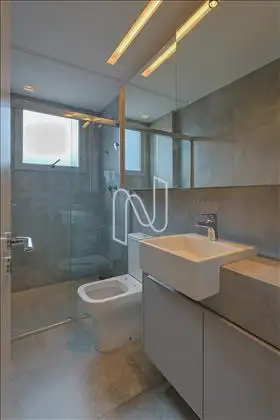 A área de serviço conta com banheiro independente, oferecendo mais comodidade e privacidade.