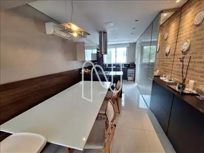 Ar condicionado na suíte e nas salas de estar e jantar.