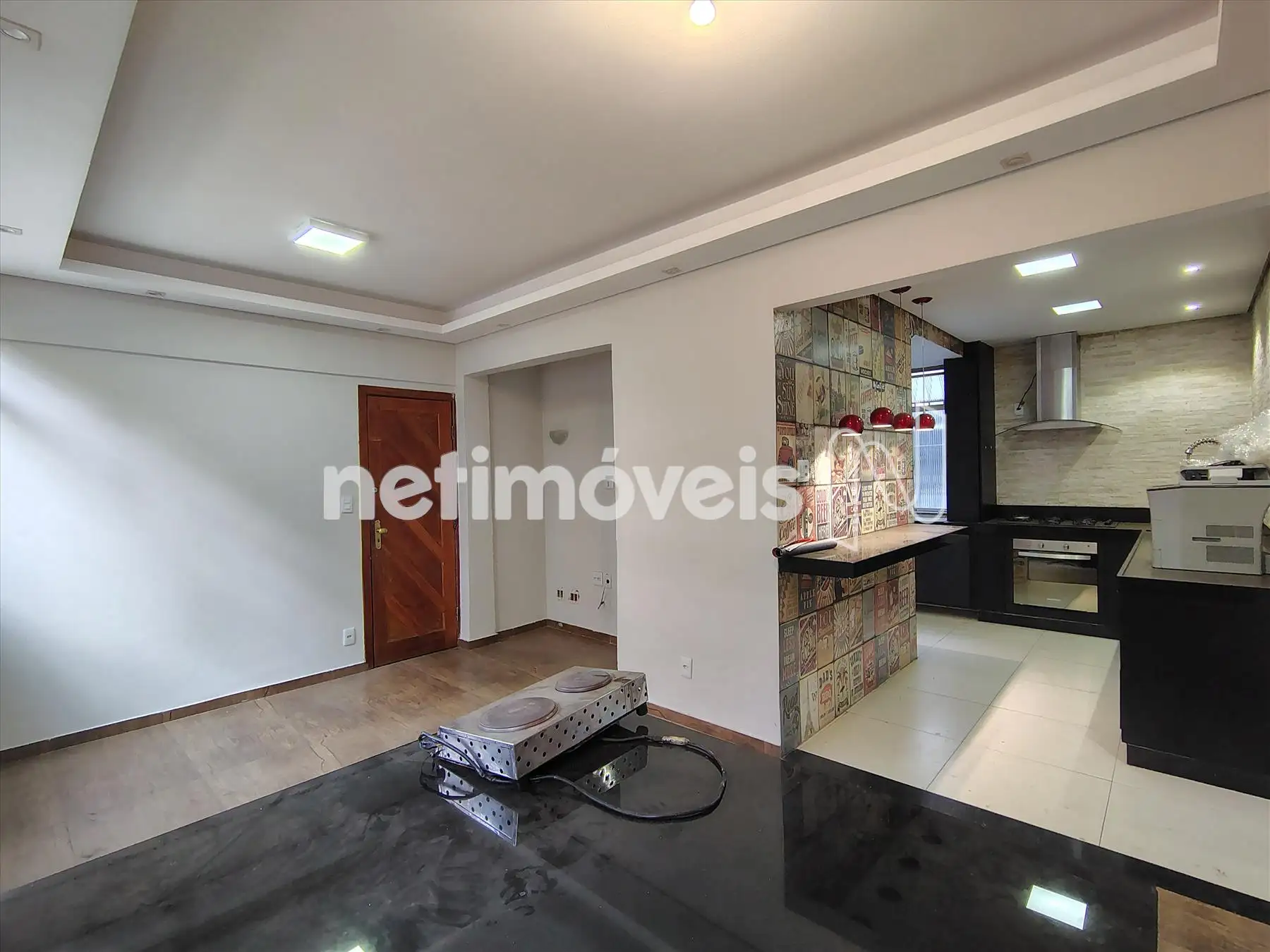 - Sala com piso em taco, janelas em esquadrias de alumínio, teto rebaixado em gesso com iluminação embutida;