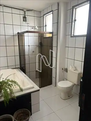 - Banho social com banheira de hidromassagem, bancada em granito, armários e box;