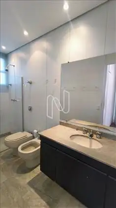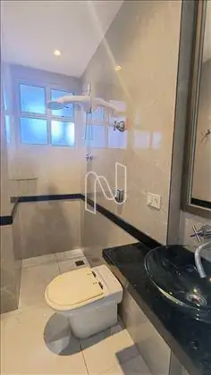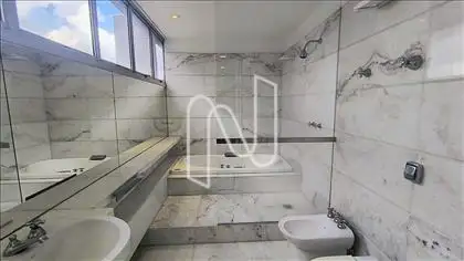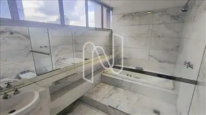 01 Banho suíte, espaçoso, piso e bancada em mármore, banheira de hidromassagem, box.