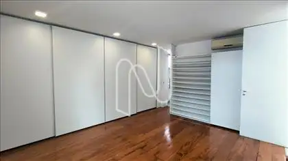 01 Quarto (suíte máster) bem amplo com piso tábua corrida com madeira de demolição, teto rebaixado com projeto luminotécnico, ar-condicionado, armário.