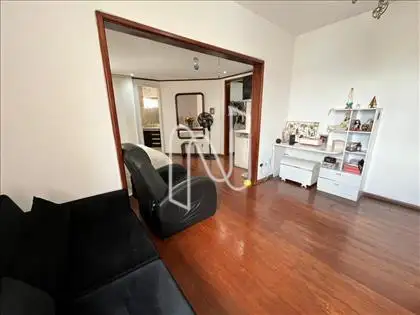 Sala para 3 ambientes, piso em tábua corrida e lavabo.