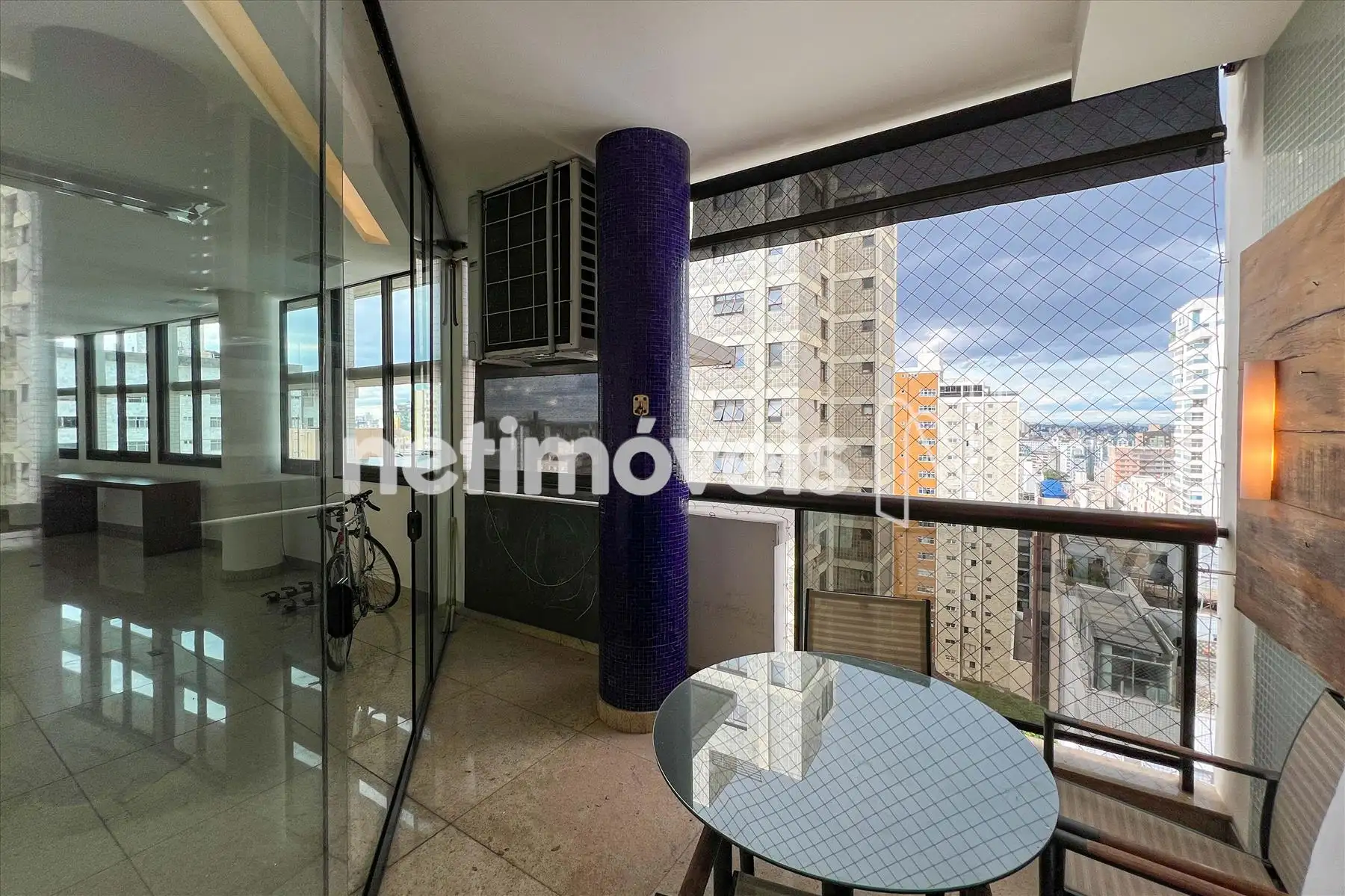 * Sala ampla para 03 ambientes com vista panorâmica para a cidade, com piso em mármore, projeto luminotécnico e varanda,