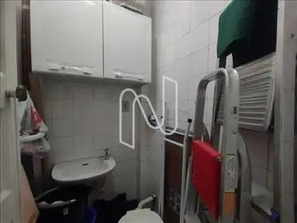 Apartamento com sala, copa, cozinha estilo americana, com piso em cerâmica, com armários, quarto de serviço com armários, área privativa com tanque e banheiro;