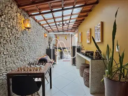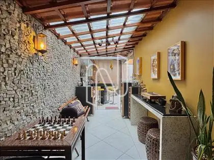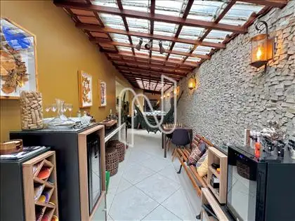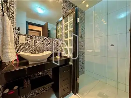 Ampla área privativa, com espaço gourmet, churrasqueira, ducha, jardim e telhas de vidro, que garantem ótima luminosidade e integração entre os ambientes;
