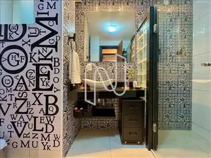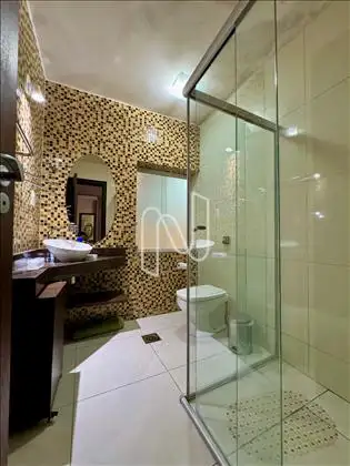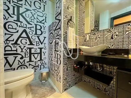 Banheiro social com acabamento moderno;