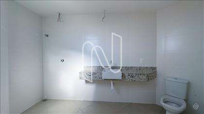 BANHOS:piso em porcelanato e paredes em cerâmica branca brilhante. Bancadas em granito.