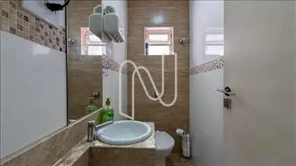 1º pavimento Alpendre, sala divisória em vidro, piso laminado, lavabo. 05 Quartos, piso laminado todos com teto em gesso, ar condicionado, 02 Quartos com banhos privativos.