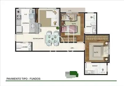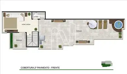 Apartamento cobertura com fino acabamento, composto no primeiro pavimento dois quartos/suítes, sala com lavabo, cozinha e área de serviço.
