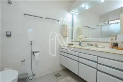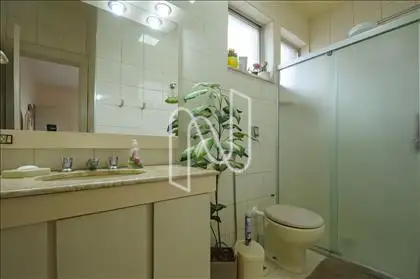 - . 03 banhos : social e 02 suítes ( sendo a mater com closet) ármarios, box em vidro temperado, espelhos.