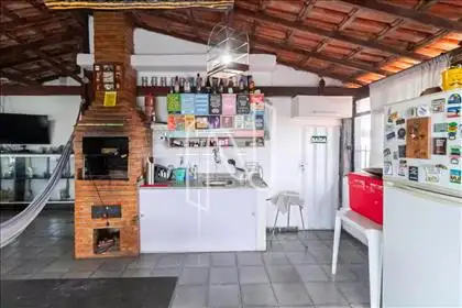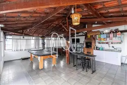 salão amplo coberto com espaço gourmet (churrasqueira)