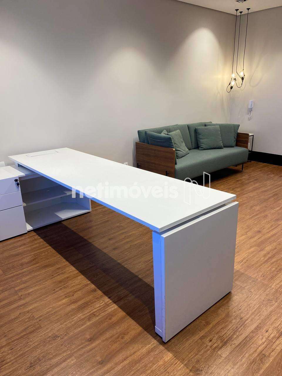 Excelente sala reformada e cuidadosamente planejada oferece um ambiente ideal para escritório. Com 26m², a sala é finamente decorada e equipada com mesa para reuniões, área de estar, cozinha planejada e banheiro com armário.