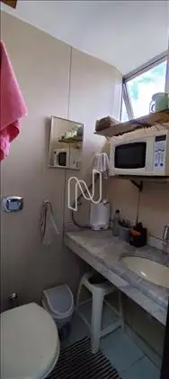 Ambiente claro e bem ventilado, conta com armário embutido sobre a janela e vista privilegiada para a Avenida Getúlio Vargas.